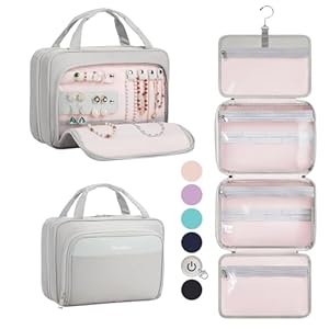 OlarHike Travel Toiletry Hanging Bag Waterproof Bags, Makeup, Toiletries, Jewelry, Travel Essentials 3 in 1 Packing Organizers, Cosmetic Full-Sized Container, Large Capacity for Women Grey