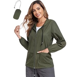 JTANIB Women’s Raincoat Waterproof Windbreaker Hooded Lightweight Packable Rain Jacket with Back Zipper Coats S-XXL