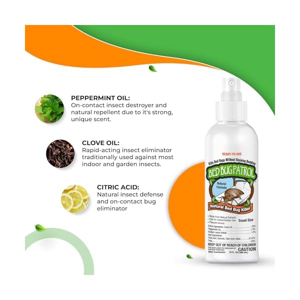 Bed Bug Travel Spray by Bed Bug Patrol – Natural Killer – Child & Pet Safe – Plant Based – Non-Toxic – TSA Approved – for Hotels, Airbnb, Rideshare, Luggage – 3oz Travel Size 3-Pack