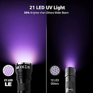 LE Black Light Flashlight, Small UV Lights with 21 LEDs, 395nm, Ultraviolet Light Detector for Invisible Ink Pens, Pet Dog Cat Urine Stain and More, AAA Batteries Included