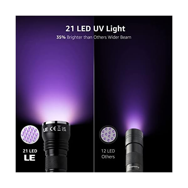 Be the first to review “LE Black Light Flashlight, Small UV Lights with 21 LEDs, 395nm, Ultraviolet Light Detector for Invisible Ink Pens, Pet Dog Cat Urine Stain and More, AAA Batteries Included” Cancel reply