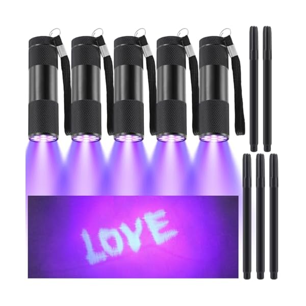 Tegeme 10 Pcs Blacklight Pen Set 5 Invisible Ink Pen 5 Blacklight Flashlights, UV Pen Invisible Ink Marker Black Light Markers for Spy Secret Christmas Holiday Gift Party Favors