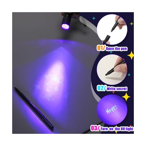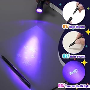 UV Markers for Blacklight: kids love to play detective games and keep secrets, making it a delightful addition to their party at home, schools and teachers can also purchase these black light flashlight mini and UV marker pen for exciting school activities, inspiring imagination among students, it can also be applied as goodie bags stuffers for kids