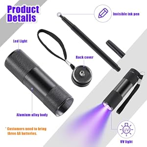 Multipurpose Use: the disappearing ink pen and light flashlight are not only suitable for birthdays, parties, Christmas, New Year, Easter and various occasions, but also suitable for detecting animal urine, pet stains, food stains, room cleaning, easily verify currency, gas leaks, and so on