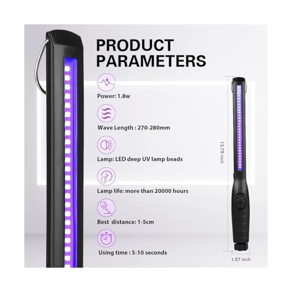 ❤❤ Warming Tips❤❤: Please don’t use this UV light sanitizer on human body, pets, plants. Don’t direct your eyes.