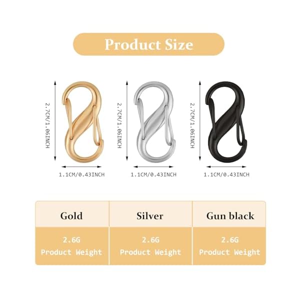 【3 Colours and Portable Size】The package contains 12 zipper lock clips in 3 different colours, gold, silver and gunmetal, the style is versatile, you can choose different colours to match your clothes or backpack. L2.7 x 1.1 x 0.3cm/1.06 x 0.43 x 0.12inch, convenient and safe to use, easy to attach to any item you want