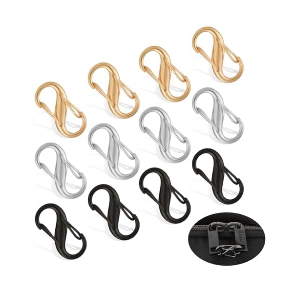 Ouligay 12 Piece Zipper Lock Clips, Backpack Locks Zipper, Replacement Zipper Pulls, Small Dual Opening Spring Clips, Anti-Theft S Small Carabiner Clips for Camping Fishing Traveling Outdoor Sports
