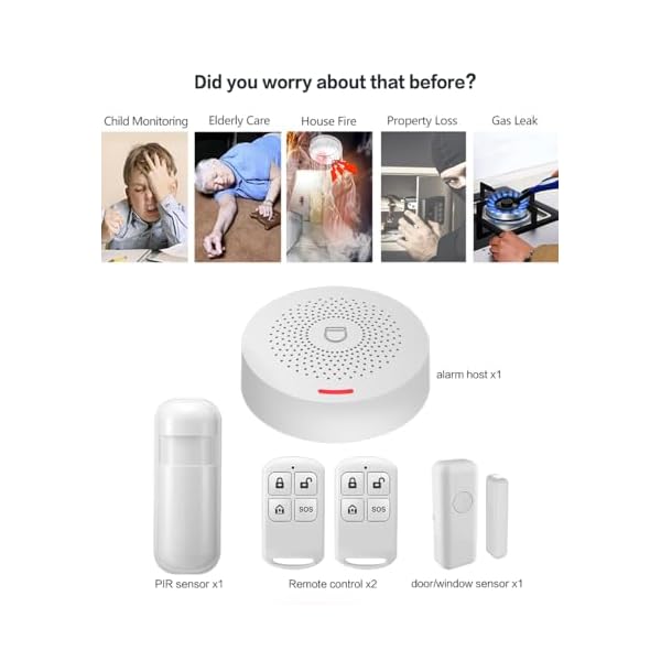 【Support Alexa and Tuya】: Wireless home burglar alarm will not destroy your home decoration style and will not damage your walls; Built-in powerful CPU based on 32-bit Cortex-M3 core, Support Tuya APP Remote Control and compatible with Amazon Alexa