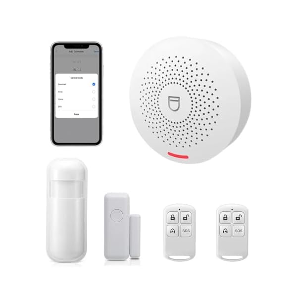 【Smart Life Devices】: Wireless home alarm kit has an elegant and refined appearance. White color meets simple European style; it is plug-and-play and lightweight and can be carried with you; The WiFi network alarm supports APP push to ensure stable and reliable alarm performance; with wireless sensor Low battery voltage alarm function; supports voice command; up to 4 remote controls and 50 wireless detectors to learn storage locations.