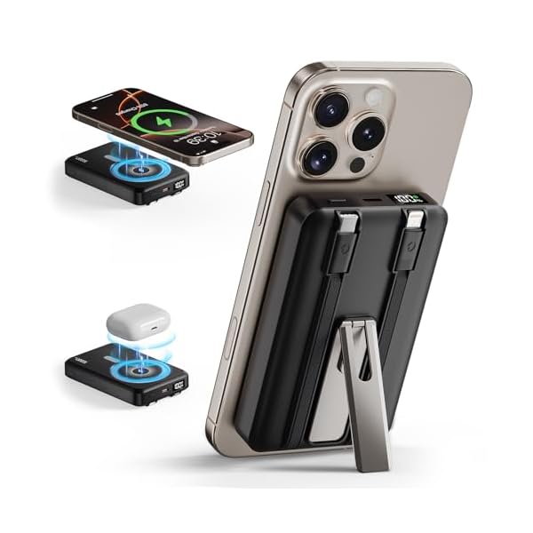 2025 Latest Magnetic Wireless Power Bank, 16800mAh Portable Charger with 2 Built in Cables, LED Display Magnetic Battery Pack Travel Essentials for iPhone 16/15/14/13/12/Pro/Mini/Pro Max Andriod