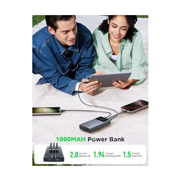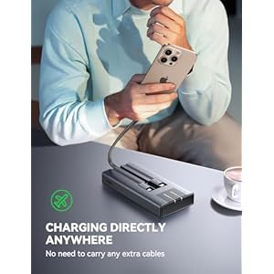 6 in 1 Portable Charger : JOYROOM 10000mAh portable charger has a wall plug and built in 3 cables (iOS, Type C, Micro), USB A and USB C port, solve all device charging problems at once