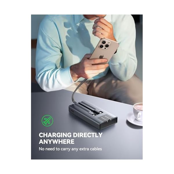 JOYROOM Portable Charger Built in Cable and AC Wall Plug [2025 Upgraded] 10000mAh PD22.5W Fast Charging Power Bank Travel Essential Battery Pack Compatible with iPhone 16/15/14
