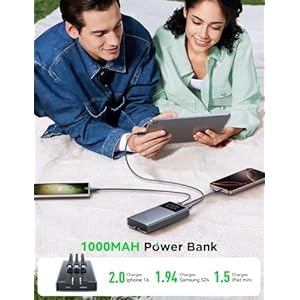 10000mAh Battery Pack : 10000mAh battery pack can be carried on airplanes. You can know the remaining power via LED Display and don’t need take any cords when going out. Portable charger with built in cable dimension is 5.6 x 2.8 x 0.9 in, weighing is 8.6 ounces