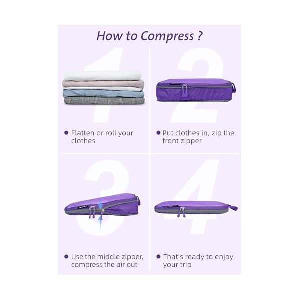 Bagail Ultralight Packing Cubes 7 Set, 3 Compression Packing Cubes 3 Packing Organizers with 1 Shoe Bag