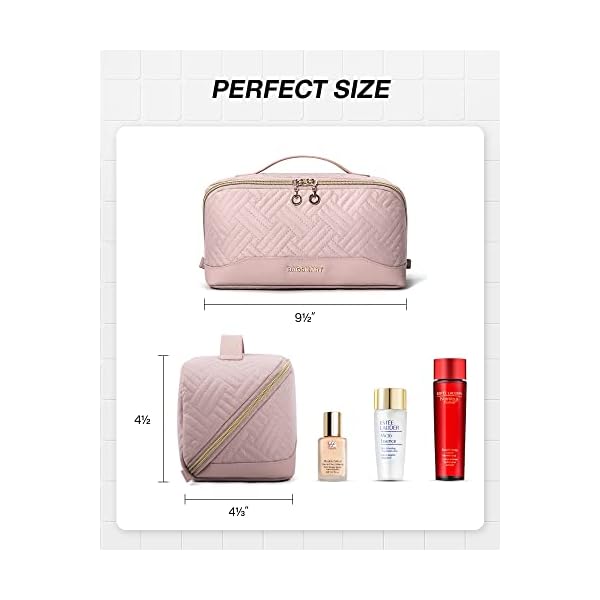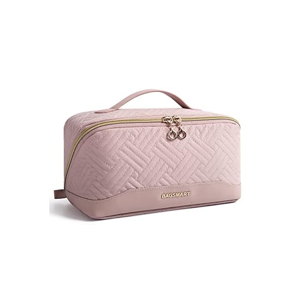 BAGSMART Travel Makeup Bag – Water-Resistant Portable Cosmetic Pouch, Flat Open Organizer for Toiletries and Brushes, Pink