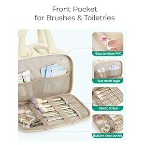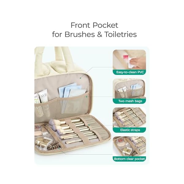 Dry-and-Wet Separation: The large toiletry bag with a waterproof PVC fabric and a front zipper pocket can help keep wet and dry items separate and make it easy to clean.
