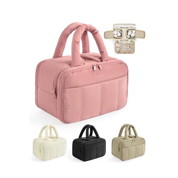 BAGSMART Travel Toiletry Bag, Puffy Large Toiletry Bag for Women, Lightweight Cosmetic Makeup Bag Organizer with Handle for Traveling, Accessories, Essentials, Toiletries (Dark Pink