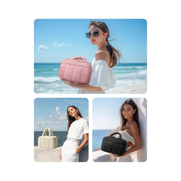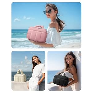 Cute and Soft Materials & Handle: The handle is also made of soft material to relieve your pressure. Made of soft and luxurious fabric, this puffy toiletry bag is like a soft, stretchy pillow, a super cute toiletry bag. Efinitely an ideal Christmas gift for yourself, your family, and your friend.