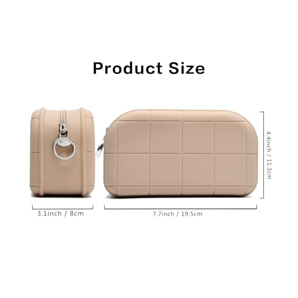 Silicone Makeup Bag Travel Cosmetic Bag Stuff Bag Makeup Pouch Cute Makeup Organizer Versatile Zipper Pouch For Women (Khaki 2)