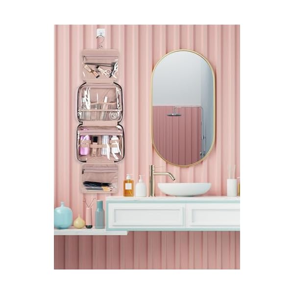 Toiletry Bag for Women, Travel Toiletry Bag with Hanging Hook Makeup Organizer, Waterproof Large Capacity Travel Bag for Accessories, Shampoo, Full Sized Container, Toiletries,Pink