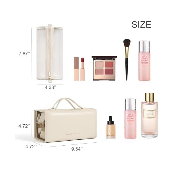 Easier Access Bag✅:The travel makeup bag features an innovative 180-degree opening for the ultimate in convenience. Effortlessly access all your makeup essentials in an instant. -When you’re ready to leave, cosmetic travel bag can be quickly tucked away again.