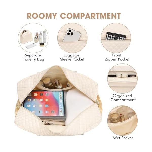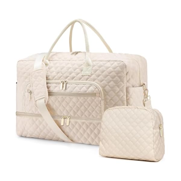 Weekender Overnight Bag Women: Large Travel Duffle Bag with Shoe Compartment & Wet Pocket Carry On Tote Bag Gym Duffel Bag with Toiletry Bag Bag for Hospital Beige