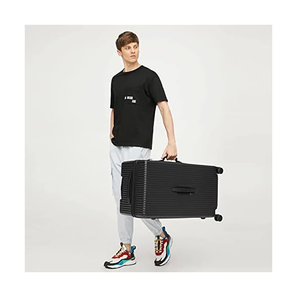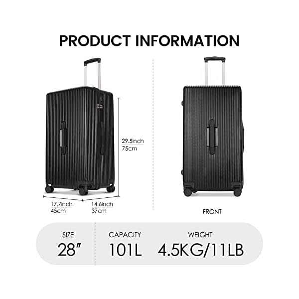 GinzaTravel Trunk Luggage, 28 Inch Luggage with Spinner Wheels, Scratch resistant texture Lightweight PC material with TSA Lock(Family Travel Series ) (Black)