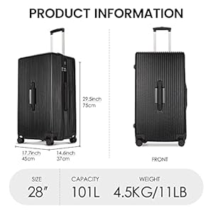 Overall Size :30inchx 17.5inchjx 14.5 inches (including wheels and handles) Weight :13.97 pounds. Capacity :101L
