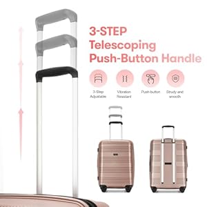 Large space&Telescope handle:Unzip to reveal 2 spacious lined compartments,one with elasticated cross straps and the other with a zip divider mesh pocket and wet & dry separation pocket where you can store toothbrush, wallet, makeups, etc.3-Step telescope handle with different heights perfectly meet the needs of various age groups.
