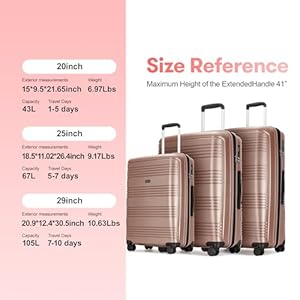 Hard Shell Lugagge:Made of brand new extra-thick PP materials for hard shell, which make the luggage more durable, lightweight and impact-resistant. Features textured finish to prevent against scratches after a trip. 20in is the best carry on luggage for airplane,20in & 24in & 28in can expand for more spaces.
