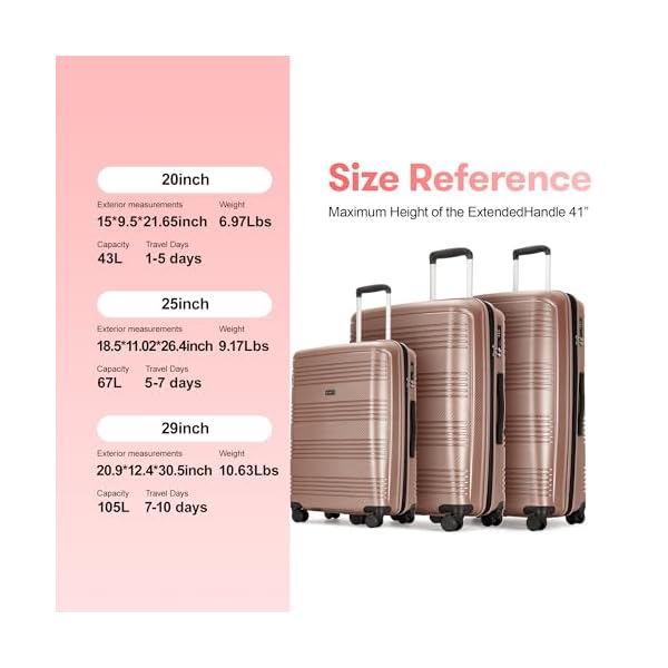 Luggage Sets 3 Piece,Hardshell Expandable Rose Gold Luggage Set for Women,Large Suitcases with Wheels,20/25/29inch