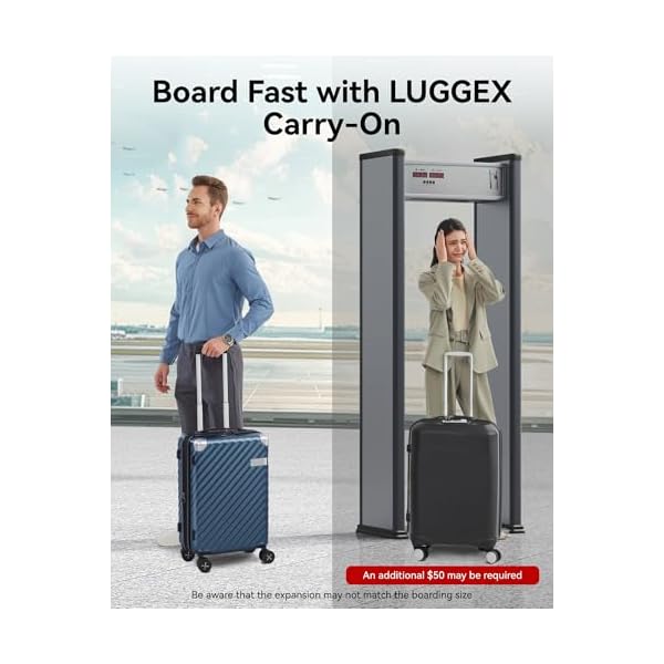 LUGGEX Luggage with Spinner Wheels, Polycarbonate Expandable Hard Shell Suitcase, Carry On 20 Inch, Black