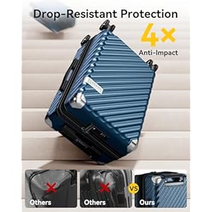 Reinforced Aluminum Corner Protectors: The carry on suitcases with wheels features 4 round aluminum corner protectors, provide superior protection against damage. Travel fearlessly with this hard case luggage, knowing your belongings are safe, even during rough transportation.