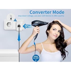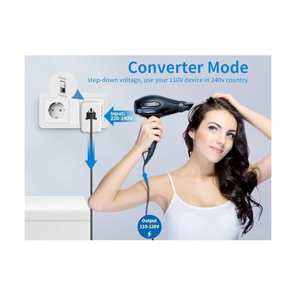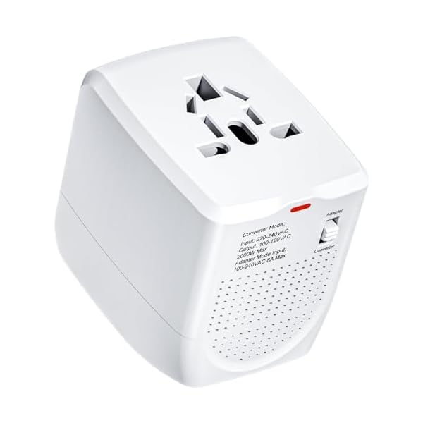 230 V TO 120 V CONVERTER — Power converter mode reduces the voltage from 230 / 240 V to 100 / 120 V at 120 V or step down to 120 V for electrical products from 25 – 880 W, with a maximum power of 2000 W at 240 V adapter mode