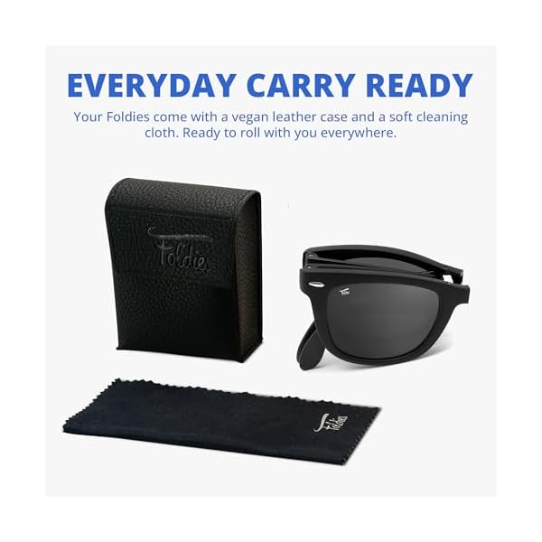Classic Folding Sunglasses Polarized, UV400, UVA, UVB Protection for Men Women, Folding Sunglasses Leather Case