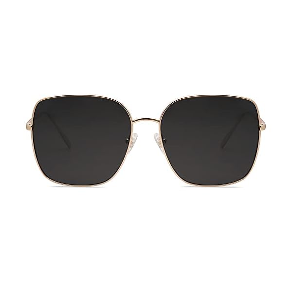 SOJOS Trendy Oversized Square Metal Frame Sunglasses for Women Men Retro Big Flat Lens UV Protection Sunglasses SJ1146