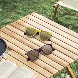 Sunglasses 2 pack Polarized Sunglasses for Mens and Womens, Matt Finish Color Retro Sun Glasses Driving Fishing UV Protection,Wood/Yellow
