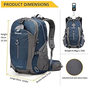 LARGE CAPACITY BACKPACK: This hiking backpack has 40L storage space, dimension is 21.3×13.8×9.1 inch. With multi-compartment design includes one main zipped compartment, one zipped front pockets and two side pockets, one separator and one small zippered pocket in the main compartment, there is more than 10 pockets can hold everything you need in travels, such as phone, pens, maps,bottles or umbrella etc. You can easily organize all your essential stuffs.