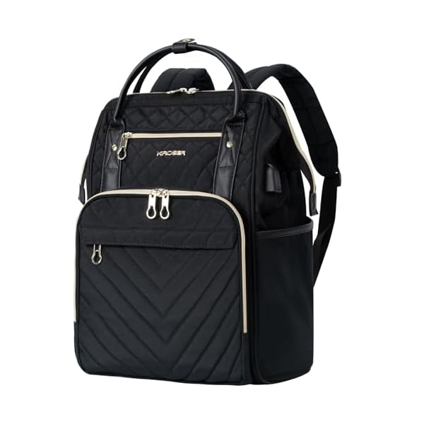 KROSER Laptop Backpack 17″ Stylish Backpack Water Repellent College Casual Daypack with USB Port Travel Business Work Bag for Men/Women-Quilted