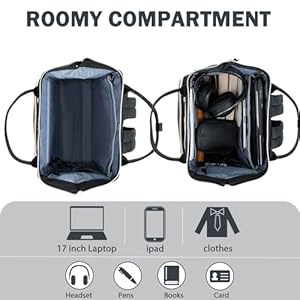 QUALITY MATERIAL: PU leather/Nylon, Water-repellent; Dimensions: 17.2″x11.15″x7.5″, fit up to 17″ laptop