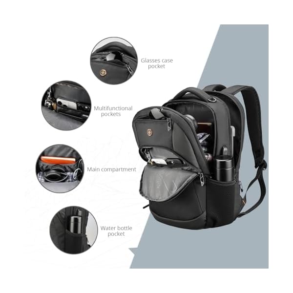 COLLEGE BACKPACK WITH LOTS OF STORAGE SPACE: A separate laptop compartment holds a 16-inch laptop. A spacious organizer compartment for everyday essentials and tech-electronic accessories. The front compartment of this men’s backpack features multiple pockets and pen pockets to keep your belongings organized and easy to find.