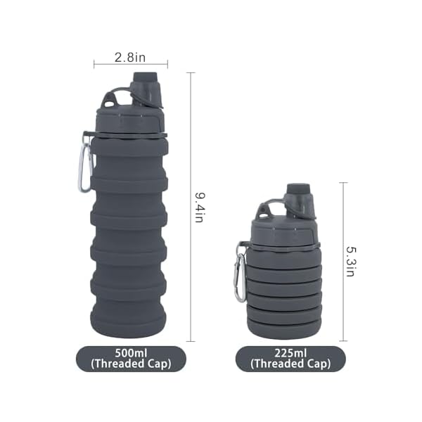 This foldable water bottle is very lightweight and easy to carry. The lightweight water bottles for travel can hold 500ml of liquid. After folding, it is converted from 24cm (height) to 13.5cm without taking up space.