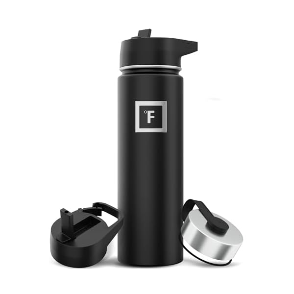 IRON °FLASK Camping & Hiking Hydration Flask with 3 Lids – Stainless Steel, Double Walled & Vacuum Insulated Water Bottle – Leak Proof & BPA Free (Midnight Black, Straw – 22 oz)