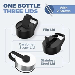 3 LIDS: YES, Iron Flask comes with THREE different LEAK PROOF lids. Carabiner Straw Lid with 2 Straws, Flip Lid, and a Stainless Steel Lid! *NOTE: The stainless steel lid is plastic from inside and stainless steel from outside*