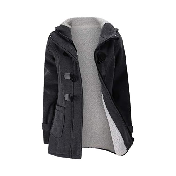 JiangWu Womens Fashion Horn Button Fleece Thicken Coat with Hood Winter Warm Jacket