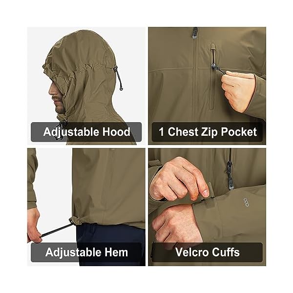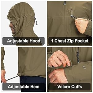 33,000ft Men’s Rain Jacket Waterproof Cycling Running Packable Raincoat with Hood Lightweight Windbreaker with Mesh Lining
