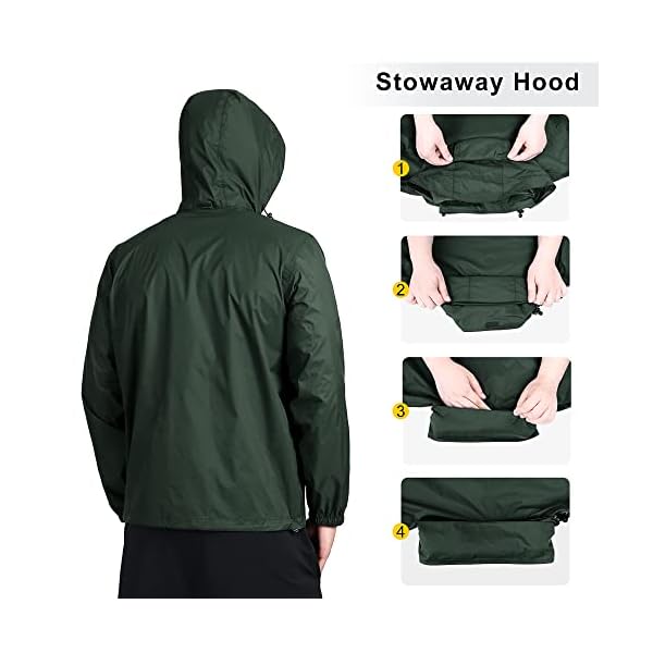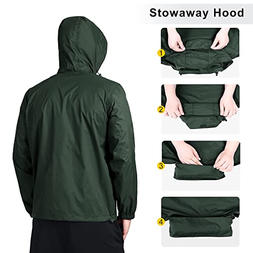 Outdoor Ventures Men’s Rain Jacket Waterproof Lightweight Packable Rain Shell Raincoat with Hood for Golf Hiking Travel
