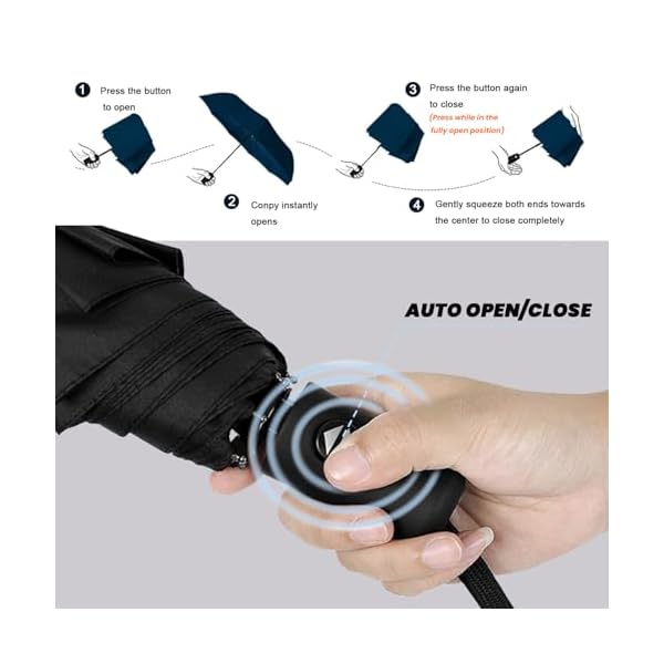 Fully Automatic Umbrella- Easy one hand operation with one auto open & close button, simply touch it to expand or collapse;